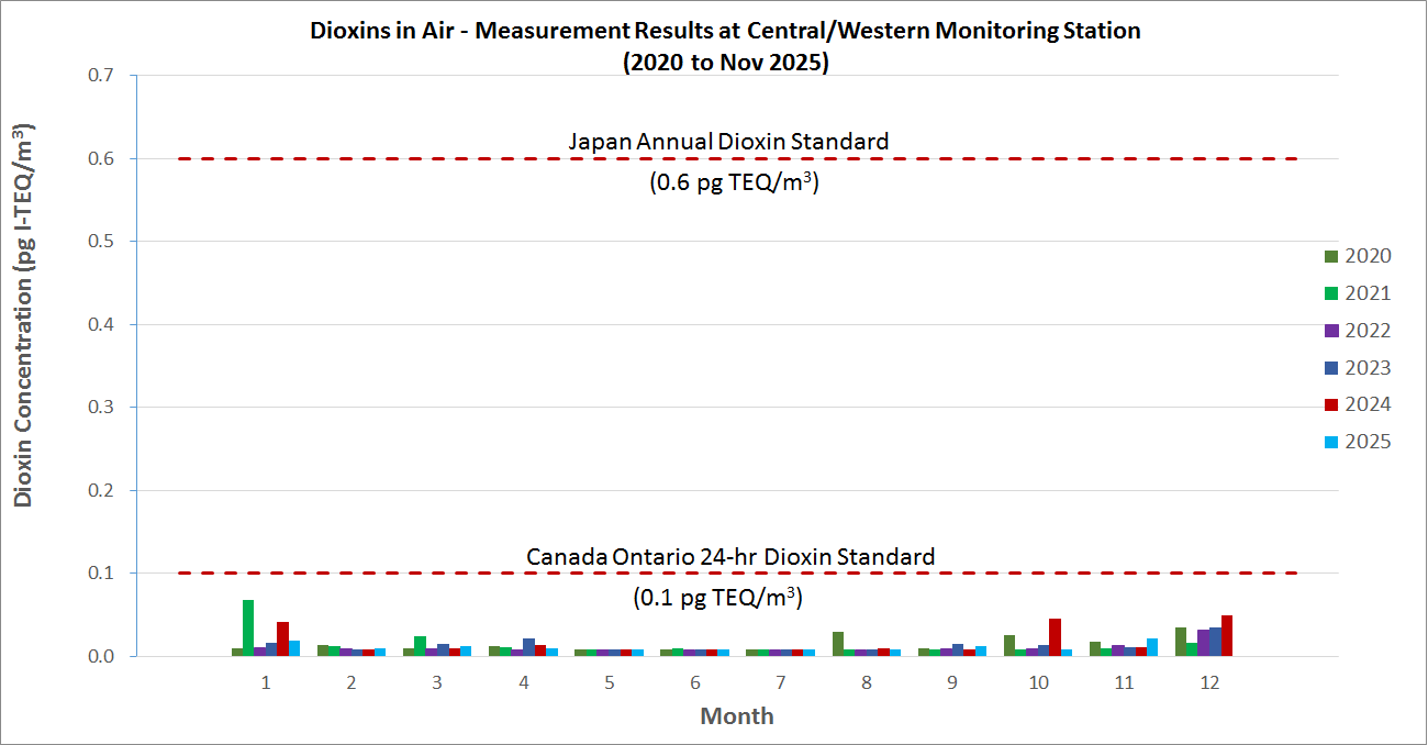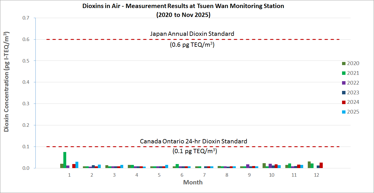 - The dioxins levels in Hong Kong are low and the trend is generally downwards. Due to seasonal factors, the dioxins levels during the winter months are in general higher than that in the summer months.